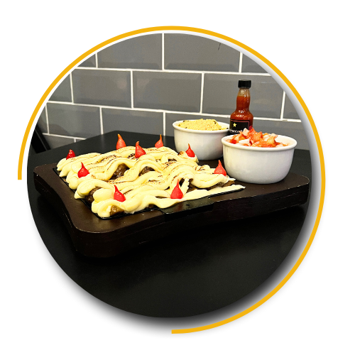 Conheça nosso delicioso filé mignon na chapa com catupiry maçaricado. Acompanha cesta de pães, vinagrete e farofa especial do chef.